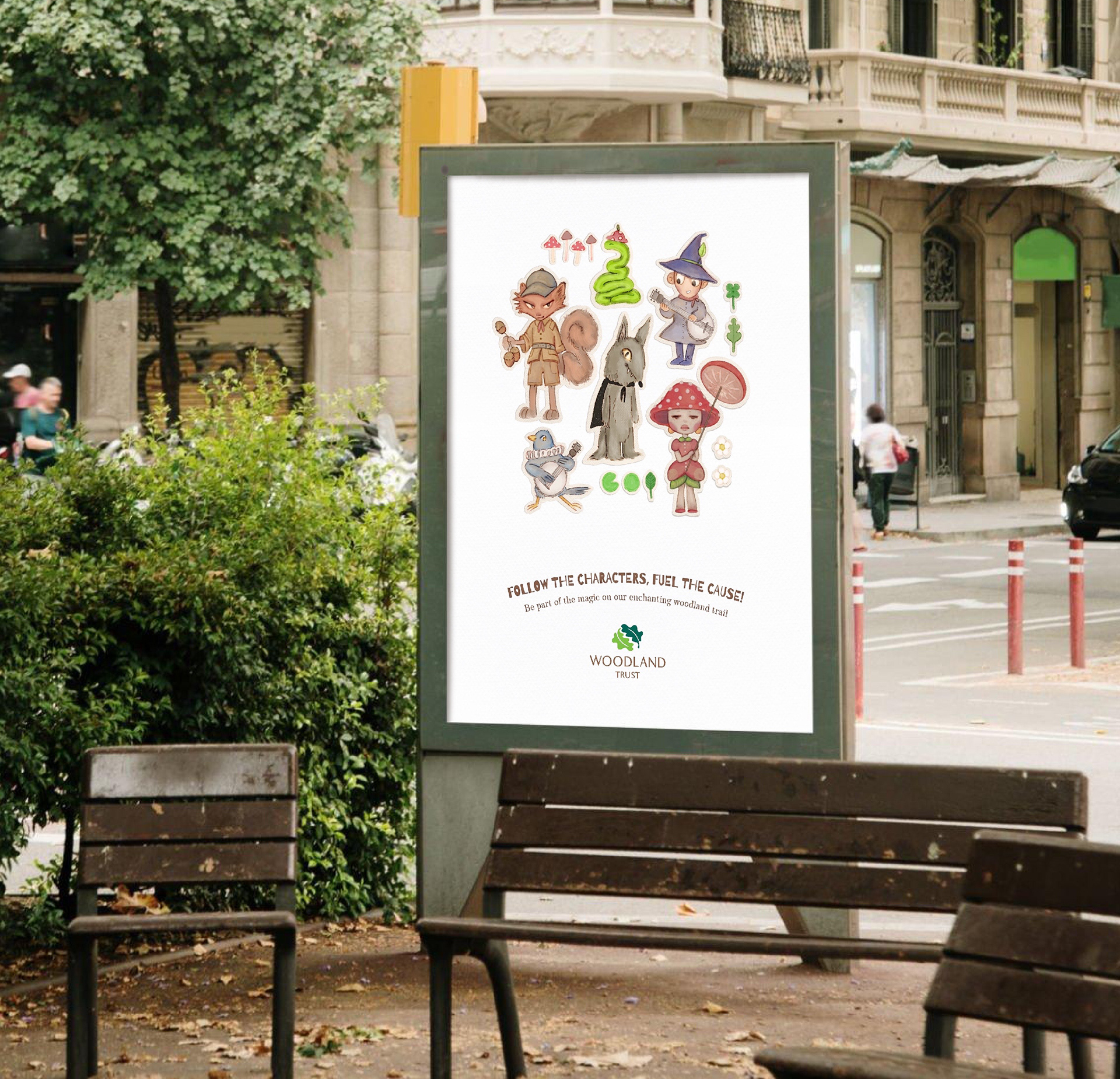 I created a charity campaign for The Woodlands Trust, featuring an interactive woodland trail game with unique characters representing diverse species. The project involved designing a poster concept and an informational sign to be strategically placed along the trail, enhancing environmental awareness.